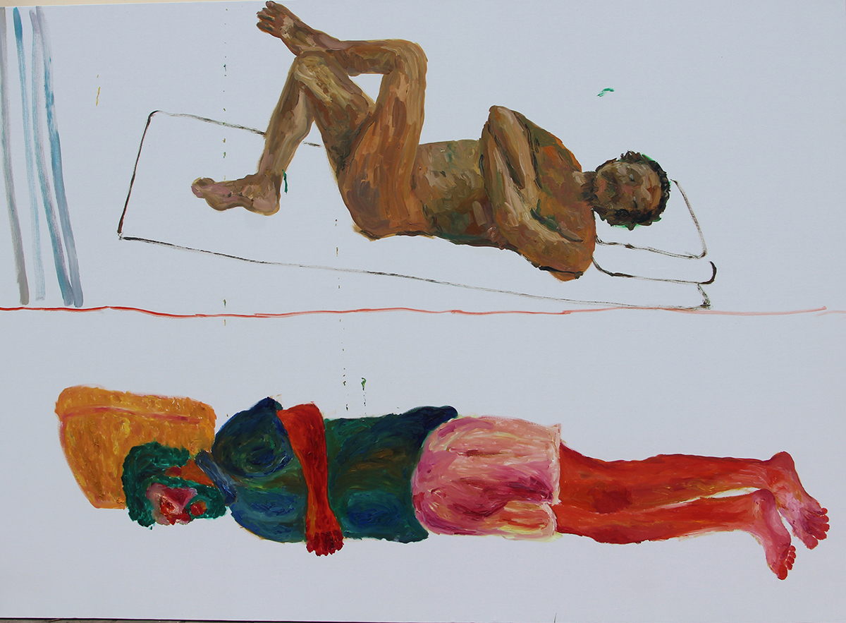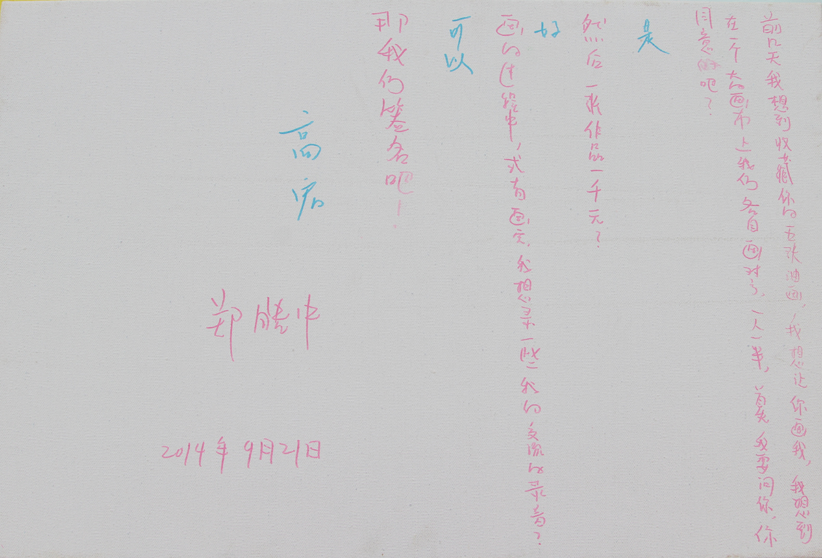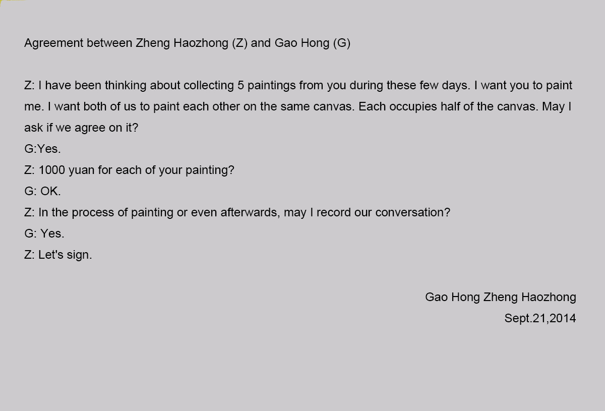 郑皓中:前几天我想到收藏你的五张油画,我想让你画我,我想在一个大的画布上我们各自画对方,一人一半,首先我要问你,你同意吗?
